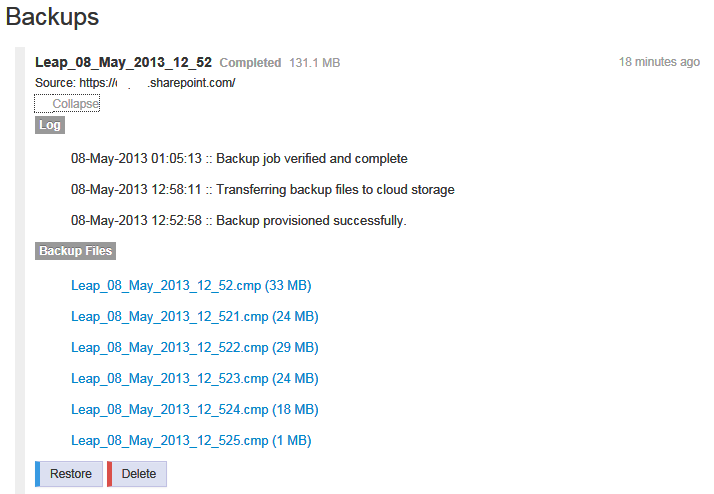 Just open the Backup tab from the left menu and expand the backup operation you want to restore/download by hitting the Expand link shown below the backup operation