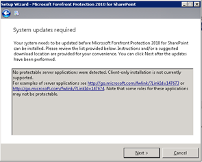 Indeed the setup program for ForeFront Protection is looking for some prerequisites which have been (off course) installed, except SharePoint Foundation 2010.