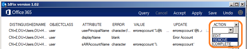 - You can also don’t want to apply any action but wanted to check/ensure your Active Directory is in a good health for Office 365 DirSync – or even more important, you should never apply any automatic action on an Active Directory in production and in this situation you may want to test in a test environment. In these cases, you can save the results as LDF file by hitting the Undo button; you will then be asked for a filename and folder destination. If you hit the Save button this will export the results as CSV file