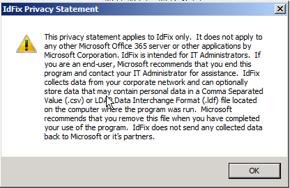 - Download the file from the URL http://www.microsoft.com/en-us/download/details.aspx?id=36832 and run the IdFix.exe which is a self-extracted ZIP file