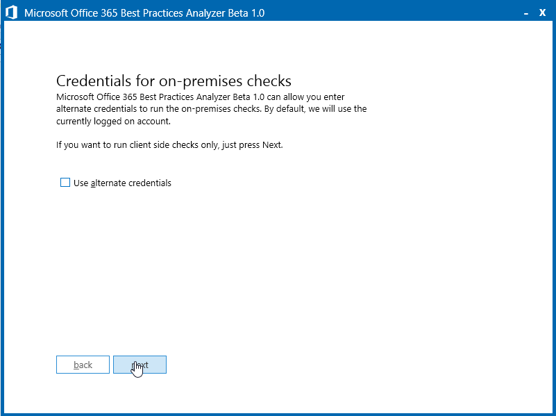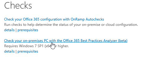 Click on Check your on-premises PC with the Office 365 Best Practices Analayser and run the tool