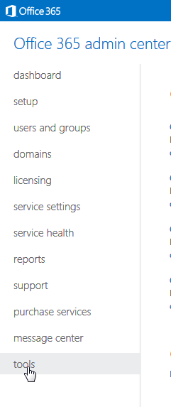 This section, called Tools, is available at the end of the left menu from the Office 365 administration portal