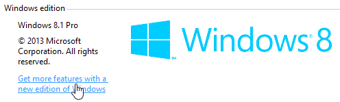 - Click on Get more features with a new edition of Windows