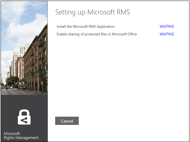 When hitting it, you may be asked to enter your Office 365 credentials – or the one you enter from the RMS Azure Portal https://portal.aadrm.com/home/