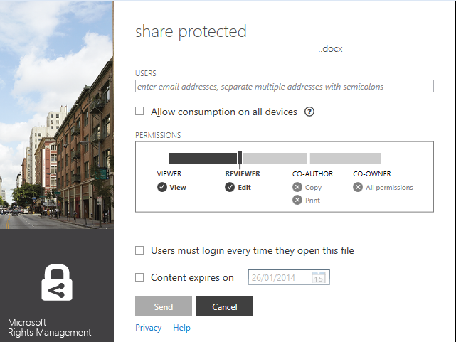 Now, with Windows Azure Right Management it’s becoming easier to share protected document outside of the company.