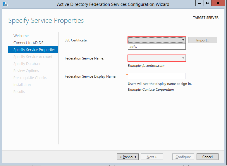 - You must have a certificate available to configure ADFS – if you are using internal certificate authority you have to deployed as Trusted or Enterprise Trust the certificate of this CA. It is off course recommended to use a certificate issued by a public authority, like Digicert http://digicert.com/