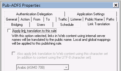 - Apply link translation to this rule – available on the rule property below the Link Translation tab – is disabled