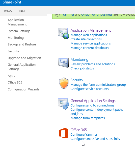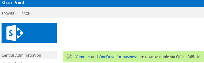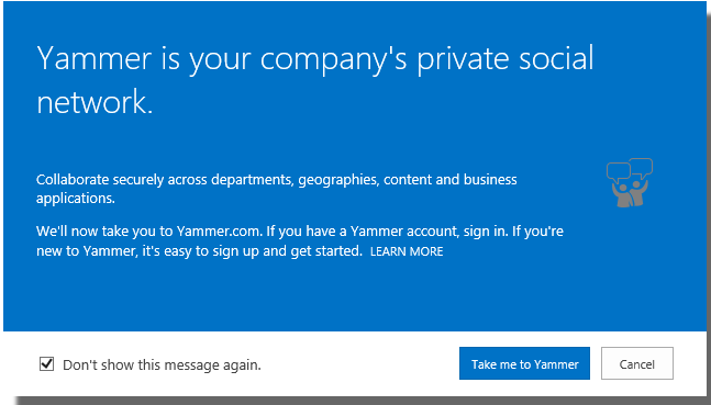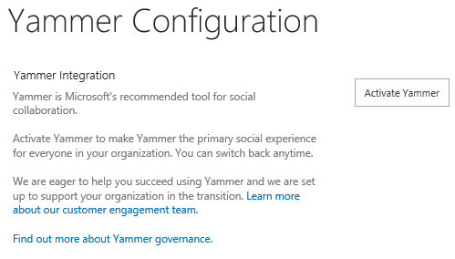 After activating Yammer, the Newsfeed link available on the top right becomes Yammer and the link associated changes to point to /_layouts/15/Yammer.aspx, which is a redirection page to your Yammer network – this is the same behavior than when you define Yammer as the Enterprise Social Network in SharePoint Online