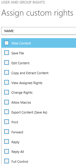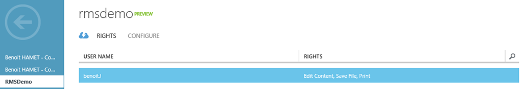 The RMS template is now created and displayed the user(s)/group(s) assigned to this template with their corresponding rights