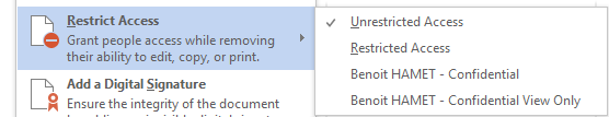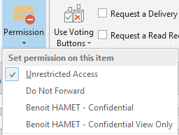 - Restricted / Do not forward – depending if you are using Outlook client or another Office application