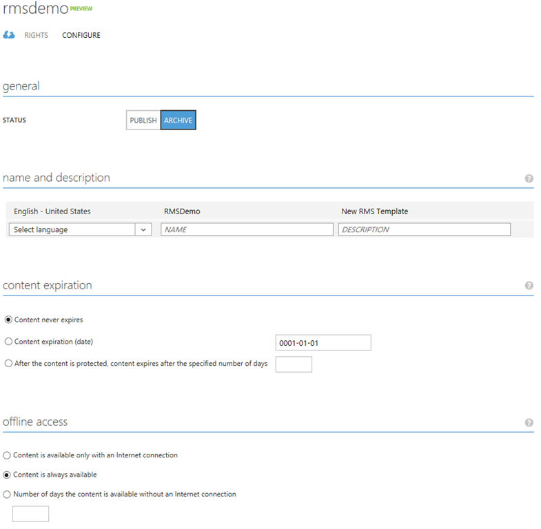 NOTE default RMS templates (Confidential and Confidential View Only) can not be updated