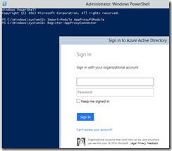 - Then register the connector to your tenant using PowerShell. Open a PowerShell command prompt running as administrator and execute the following – when running the registration command you will be asked to enter your Azure credential (use an administrator organizational account, your Microsoft Account will not work)