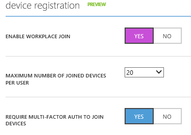 Now, this feature is in preview on Azure too. The aim for this cloud device registration service is more to deliver a way for administrator to view the registered devices (and so the user associated with) than to provide a real cloud solution for this feature, as you still need to deploy ADFS 3.0 on your On Premises.