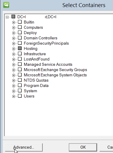 Do not change any OU selection (except if you want to update your OU filtering in the same time); click on the Advanced button