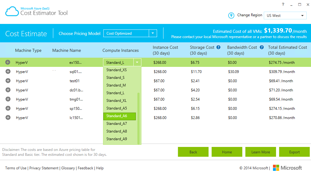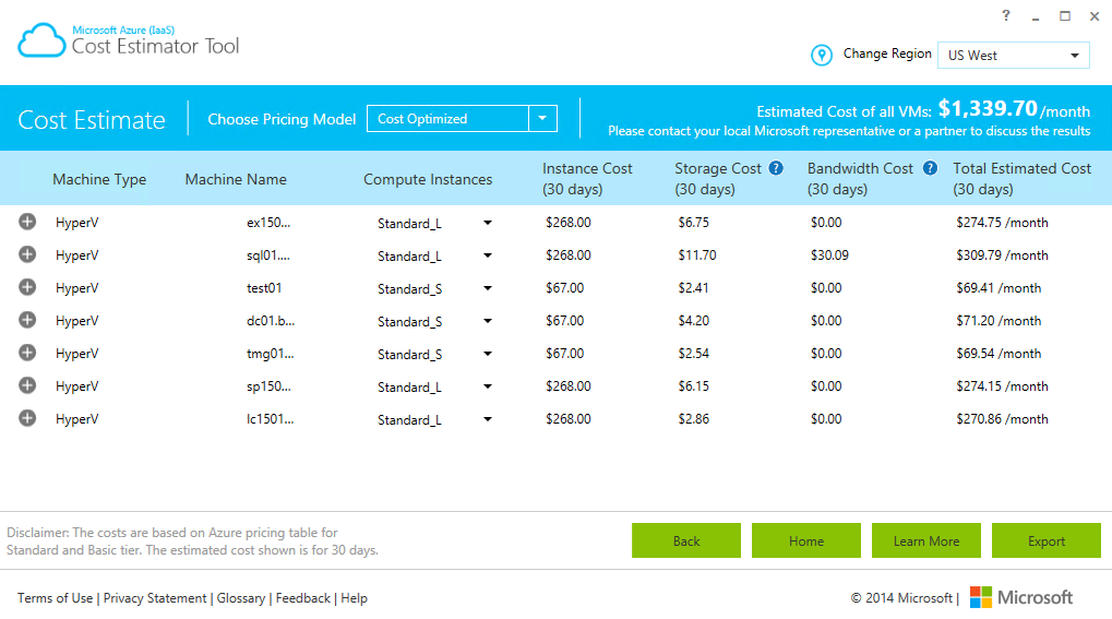 Microsoft has update his Azure Cost Estimation tool now available at http://www.microsoft.com/en-us/download/details.aspx?id=43376