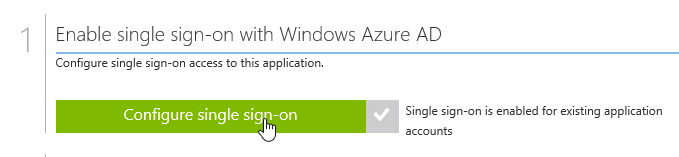 Add a federated application (or hit an existing federated app to reach his settings) and configure his single sign on setting and ensure/choose Windows Azure AD Sign-On option; if you are adding a new application you may have to define the sign in URL