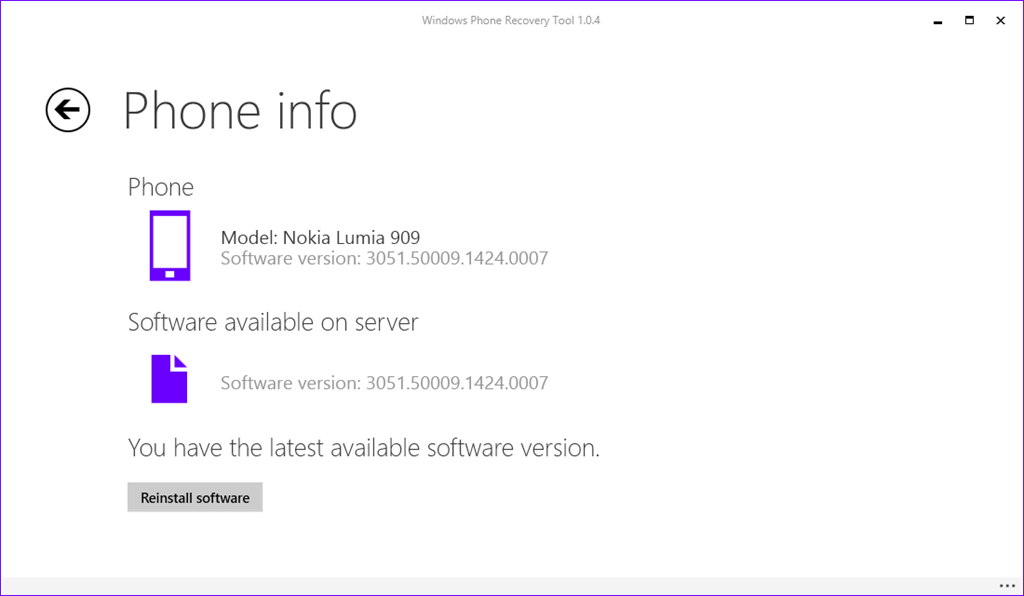 If your phone has been connected when you launched the application it will be displayed – it seems there is some sort of bugs here as the phone detected here is not my Nokia Lumia 1020