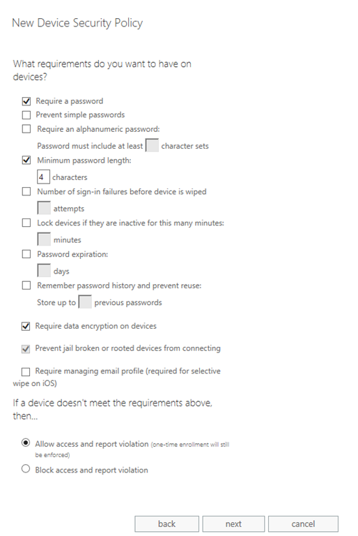 You can now define complete access rules for mobile devices to access your Office 365 resources.