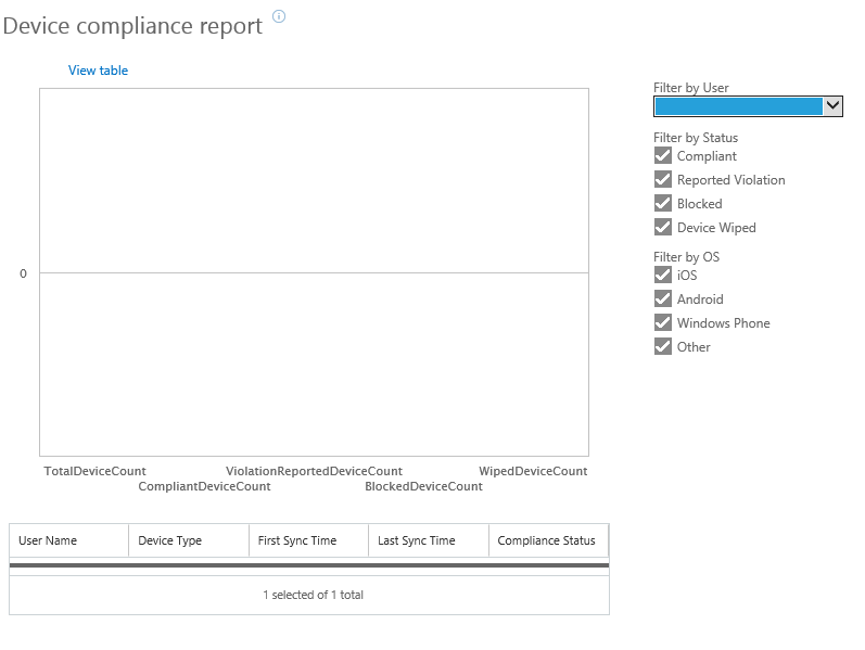 From the Office 365 admin portal you can get compliance reports for registered devices