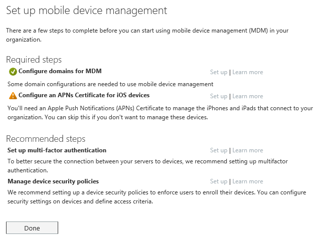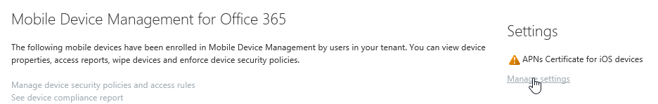 Then, if you want to use the Office 365 MDM, you have to activate the service by going to the Mobile Devices menu from the Office 365 admin portal to activating it; please note it may take some time to complete the activation