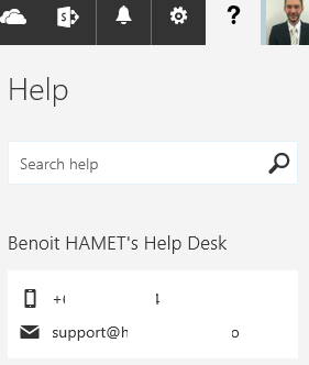 The next time your users will logon onto Office 365, if they click the Question Mark on the left side of their picture, they will get your help desk details