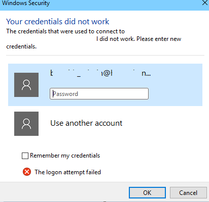 So off course, you always get The logon attempt failed error, which in fact does not really help as you have been sure of the credentials you entered.