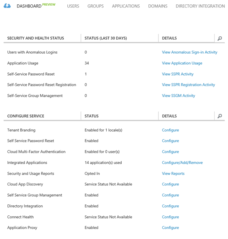 This feature gives you an eye bird view on the health, usage and configuration of your Azure Directory