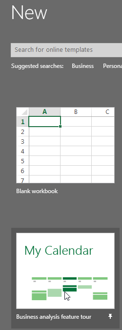 Open Excel and look for the Calendar Insights template (or Business Analysis Feature Tour which is the real name)