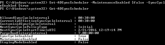 Set-ADSyncScheduler –CustomizedSyncCycleInterval