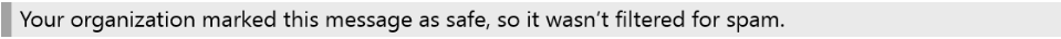 - Messages marked with a gray safety tip indicates that the email was not filtered for spam because it is either considered Safe by the user’s organization, is on the user’s safe senders list or Exchange Online Protection marked the message as junk but the user moved it out of the junk folder to the inbox. The gray safety bar also appears when images within the message have been disabled