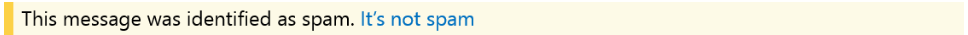 - A yellow bar at the top of the message indicates an Unknown safety level. Being marked as Unknown indicates that Exchange Online Protection has marked the message as spam. You can click the It’s not spam link in the yellow bar of a junk mail item to move the message to your inbox