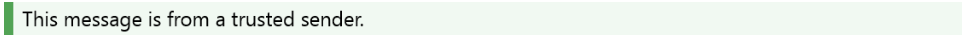 - Messages from a Trusted sender display a green bar at the top of the message. These are from domains identified by Microsoft as being safe