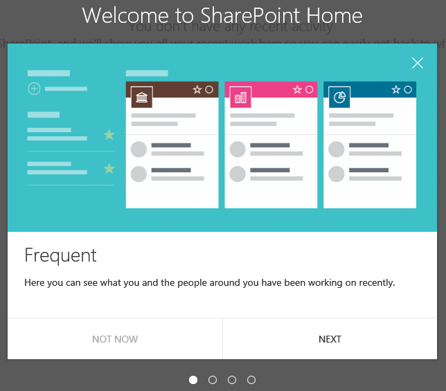 Then, the first time you access the new Home, you will a quick welcome deck to help you use this new SharePoint Home