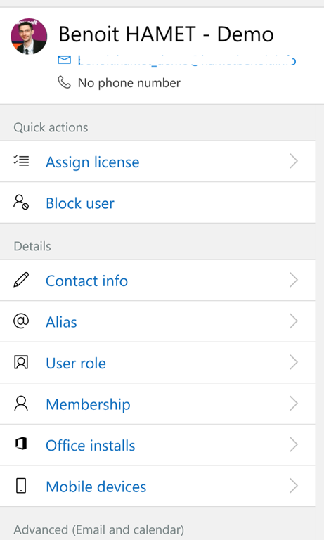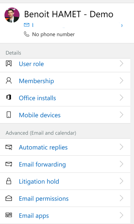 The administration mobile app for Office 365 has been updated (or will be within the next few weeks for iOS)