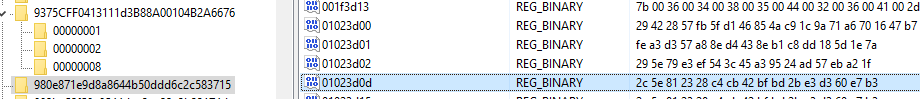 Take the value from the 01023d0d binary value and repeat the same search