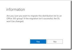 Confirm you want to convert to Office 365 Groups – thankfully if anything goes wrong, the DL will not be changed