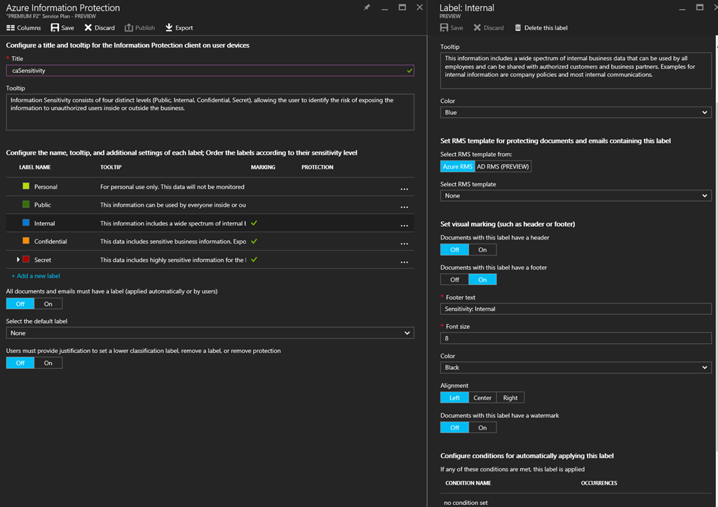 - the Azure Information Protection portal (here https://portal.azure.com/signin/index/?Microsoft_Azure_InformationProtection=true)