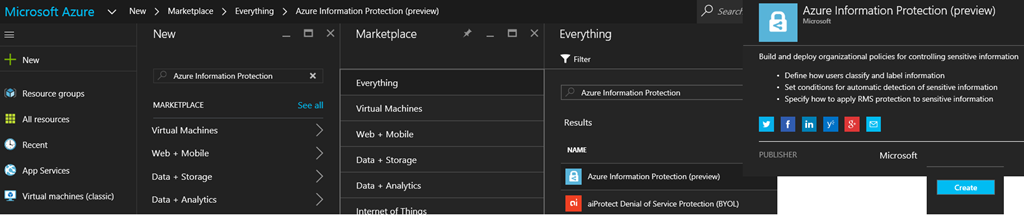 If the link provided does not work, just search in the marketplace for Azure Information Protection and click Create