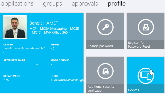 - https://account.activedirectory.windowsazure.com/profile/ and then click on the Devices tile
