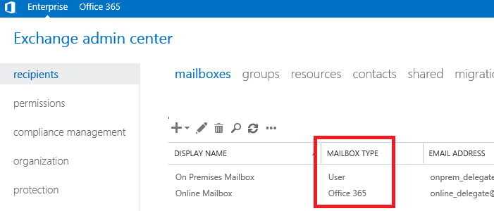 I just noticed that you can now have access to a delegated mailbox hosted on premises if your mailbox is on Office 365, and the other way too.