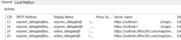 The main mailbox is hosted on premises and the delegated is hosted on Exchange Online