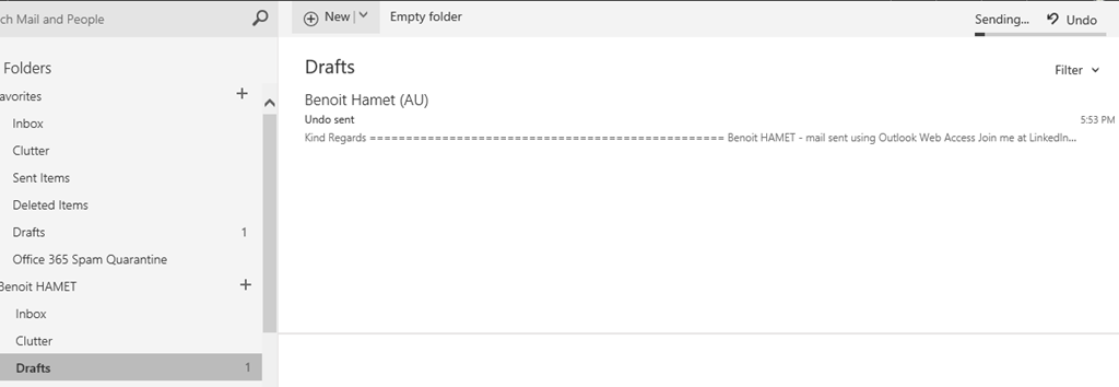 This means if you want to retract this mail, you just have to go to your Draft folder and hit the Undo action button shown on top right of the folder view, which then will convert the mail to a draft.