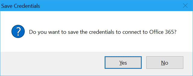 You will be prompted if you want to save the credentials to connect to Office 365 and the SMTP server.