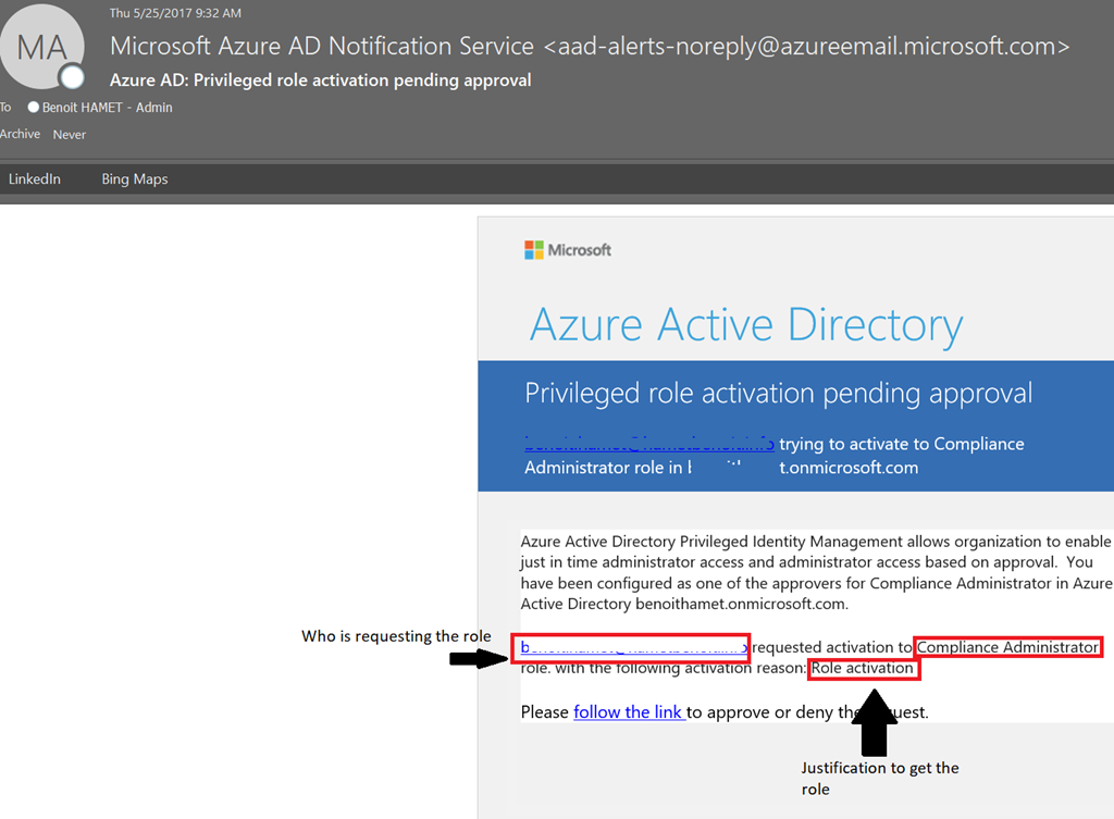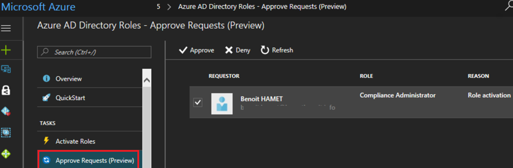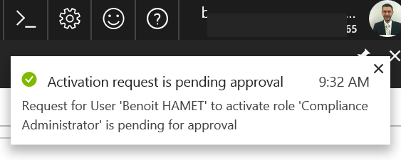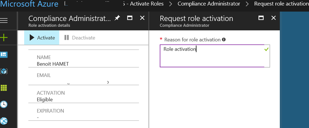 End-users which have been set as eligible for a role can then request to activate the role from the Azure Portal and fill the justification to get the role activated