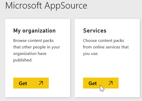 Once logged on to Power BI choose use a Microsoft AppSource by selecting Services