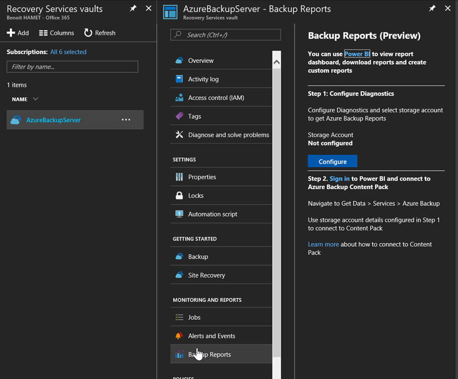 In the continuity of my posts about Azure Backup Server, this one is related to setting Azure Backup reports (in preview currently).