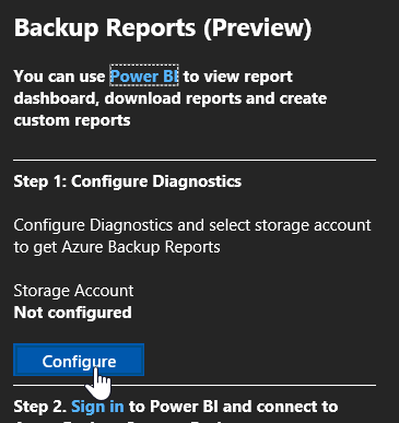 Re connect to the Azure portal and return the Monitoring and reports\Backup Reports section to sign in to Power BI