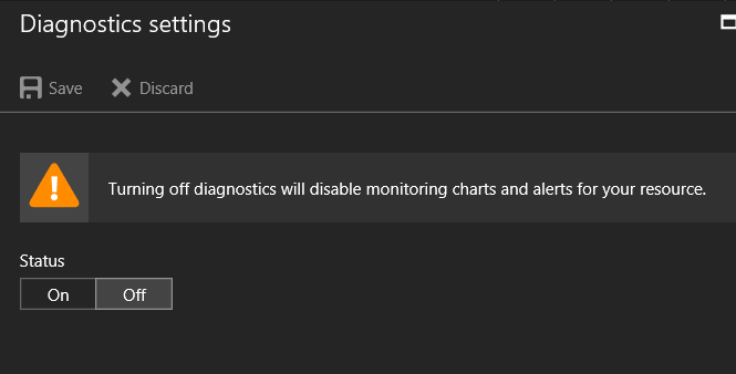 When starting to configure the storage account you may got a blade related to Diagnostic settings; you are getting this blade because your settings have turn off the diagnostic function, you need to turn it on