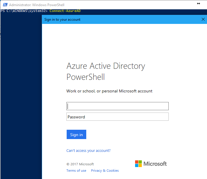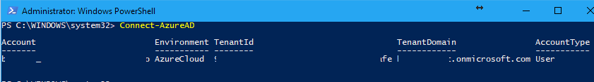 - Once you have the AzureADPreview module installed, connect to your tenant using the command Connect-AzureAD