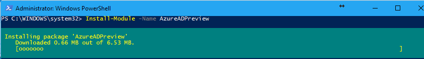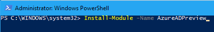 NOTE: if you already had a previous version of the AzureADPreview module installed, use the –Force parameter (Install-Module -Name AzureADPreview –Force)
